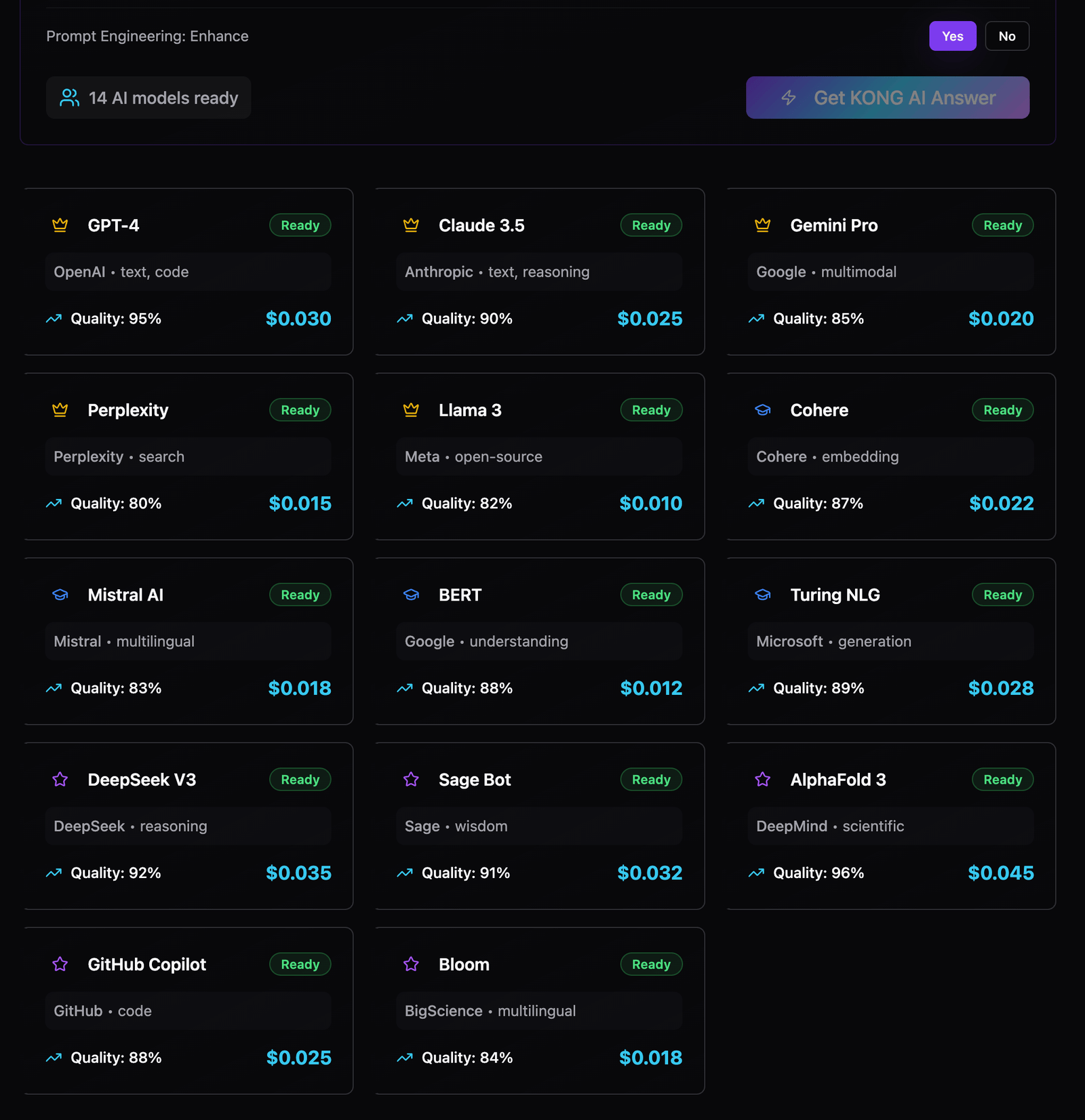 No. You simply describe your goal in plain language, and KONG AI handles the prompt crafting, routing, and execution for you.